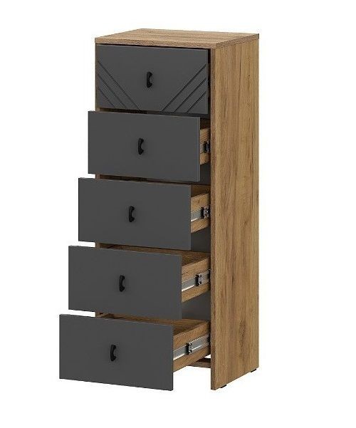 Интернет-магазин "Мебель 24" рад предложить БАЙКАЛ Комод (5 ящиков) Графит/Дуб золотой по привлекательной цене, от производителя NN МЕБЕЛЬ.