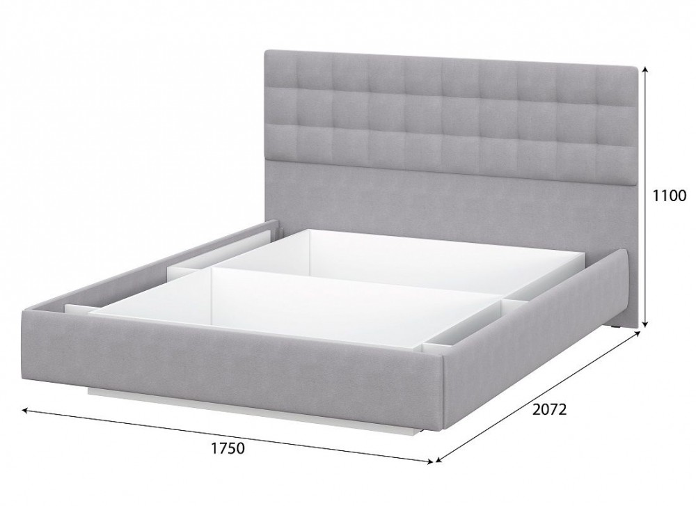 Кровать двойная №2 (универсальная 1.6х2.0) Серия 2 + основание (Белый/Серый ткань/Квадро Серый ткань)