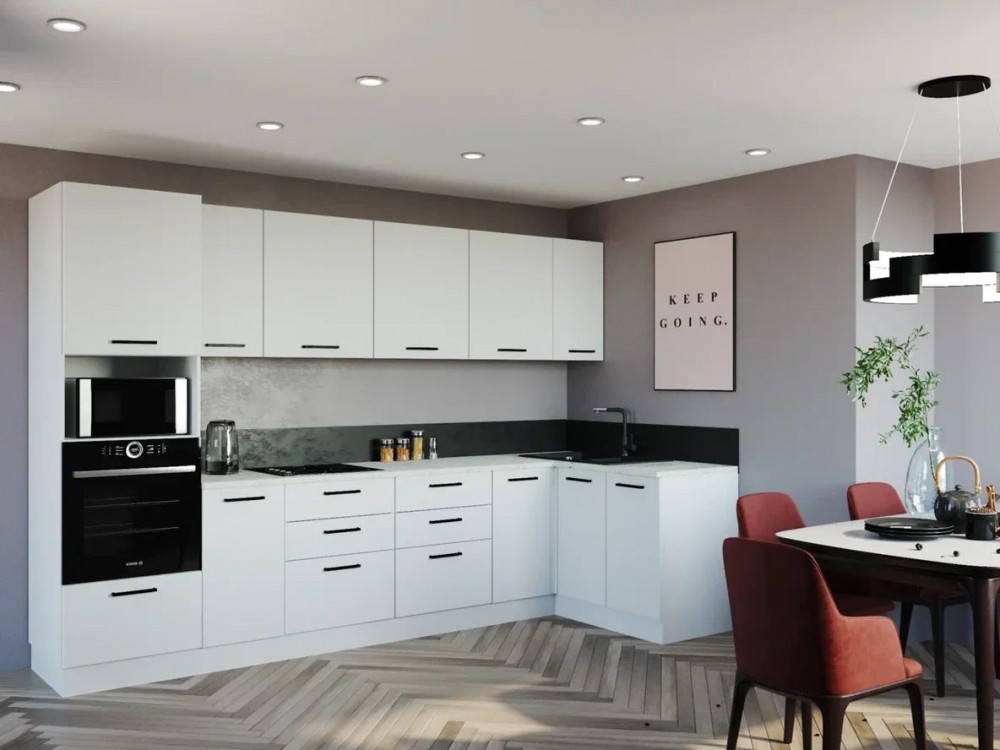 Кухонный гарнитур Белый Глянец 3200*1400 (Стол. 26мм)