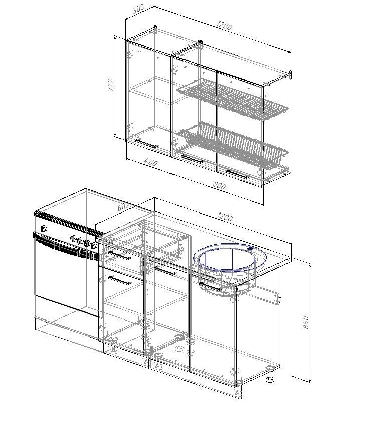 Кухонный гарнитур Капри 1200 (Стол. 26мм)