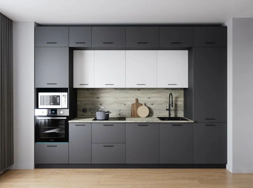 Фасады верхних модулей со свесом 12 мм дают возможность использовать без установки ручек.