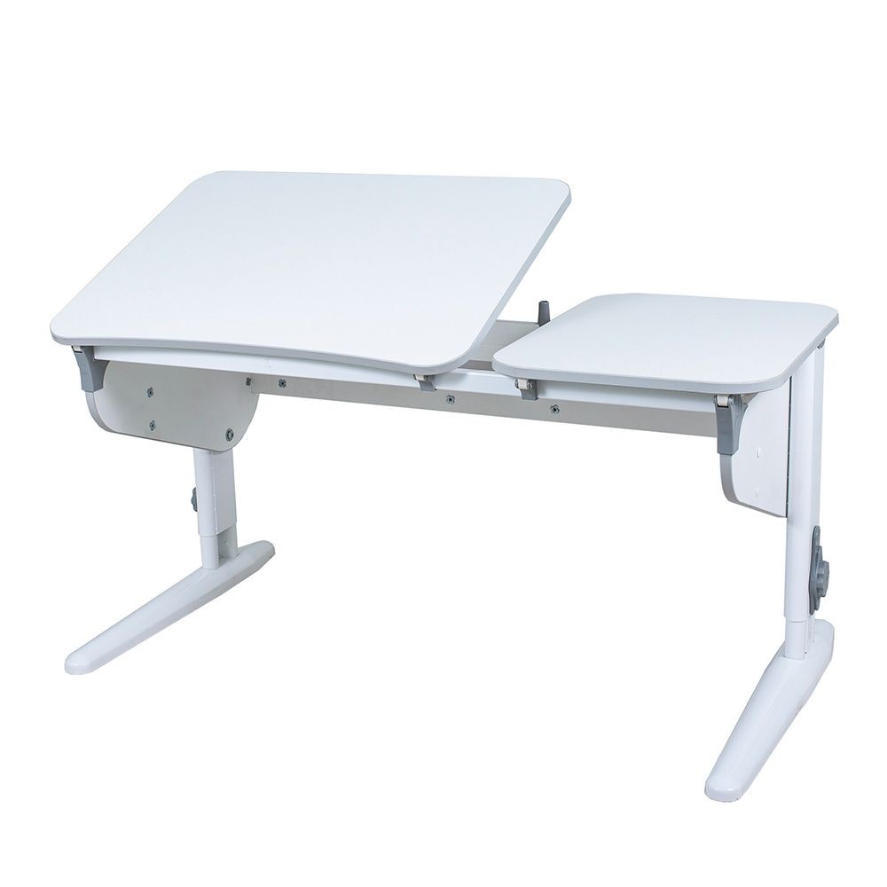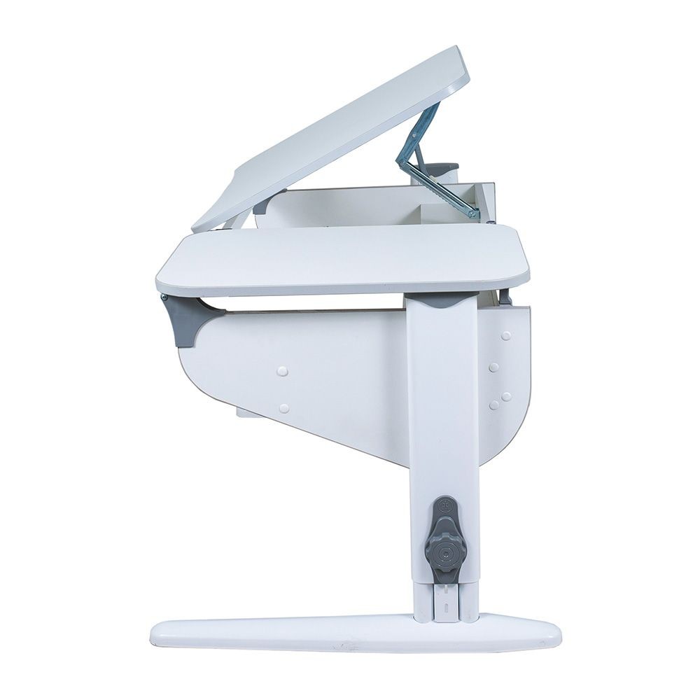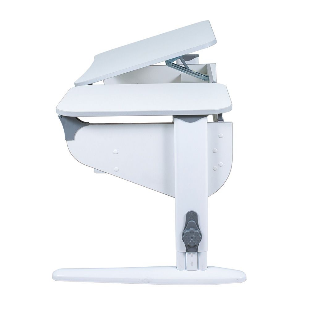 Основная крышка столешницы легко регулируется по наклону от 0о до 30о, подбирается оптимальное положение для любых занятий. Дополнительная крышка столешницы стационарна. Сам стол тонко настраивается по высоте, помогая ребёнку сохранять правильную посадку, защищая его от сколиоза и остеохондроза.