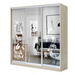 Фасад: 1 дверь Зеркало + 2 двери Зеркало с пескоструйной обработкой
